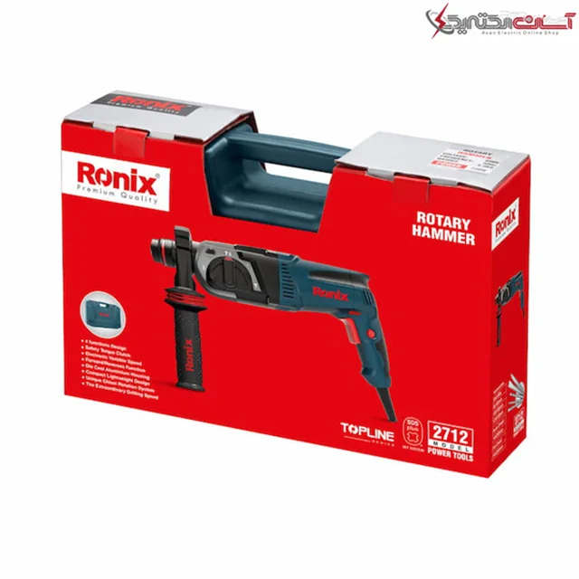 بتن کن 26 میلی متری رونیکس مدل 2712 مجهز به موتور قدرتمند 720 واتی است که می تواند سرعتی بالغ بر 1200 دور و 4500 ضربه در دقیقه ایجاد کند. این دستگاه دارای ابزارگیر چهار شیار با ظرفیت 26 میلی متر است و امکان نفوذ مته تا عمق 26 میلی متر در بتن و 13 میلی متر در سطوح فلزی را به وجود می آورد. از دیگر ویژگی های این بتن کن می توان به دکمه تغییر حالت سوراخ کاری، سوراخ کاری چکشی و تخریب اشاره کرد. به علاوه 2712 دارای بدنه ای سبک وزن و مقاوم از جنس آلومینیوم دایکاست است که تنها 3.3 کیلوگرم وزن داشته و در یک کیف BMC مقاوم در برابر ضربه همراه با 5 مدل مته، میله تنظیم عمق و دسته جانبی ارگونومیک عرضه می شود.
