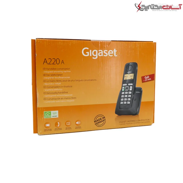 محصولی که در این قسمت مشاهده میکنید، یکی از تلفنهای بیسیم و باکیفیت شرکت «گیگاست» مدل «A220A» است که امکانات پایهای را در اختیار کاربر میگذارد. این مدل از فرکانس 1.9 گیگاهرتز برای برقراری ارتباط رادیویی بهره میبرد که منحصراً در اختیار تلفنهای بیسیم بوده و دستگاههای دیگر مانند مودمهای بیسیم و فناوری بلوتوث از آن استفاده نمیکنند؛ درنتیجه در ارتباط رادیویی با دستگاههای دیگر اختلالی وجود ندارد. مهمترین ویژگی این تلفن قابلیت منشی تلفنی است که میتواند تا 25 دقیقه از پیامهای تلفنی تماسگیرندگان را ضبط کند. نقطهی قوت این محصول همانند دیگر محصولات گیگاست باتری بسیار قدرتمند آن است که میتواند تا 18 ساعت مکالمه را پشتیبانی کند. مدلهای همردهی این مدل در برندهای دیگر معمولاً چیزی حدود 7 تا 12 ساعت مکالمه را فراهم میکنند که همین موضوع نشان از کیفیت بالای این مدل دارد. صفحهنمایش این محصول همچنین دارای نور پسزمینه است و کارکردن با آن را هنگام شب و تاریکی تسهیل میکند. قابلیت دیگر این گوشی بلندگوی دیجیتال آن است که در تلفنهای بیسیم بسیار مهم است و به کاربر این امکان را میدهد تا بهصورت هندزفری مکالمات خود را انجام دهد.