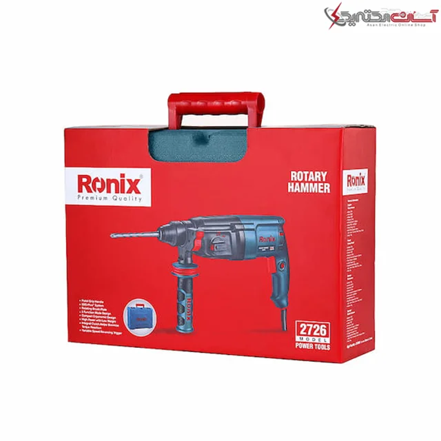 بتنکن 26 میلیمتری 2726 رونیکس مجهز به موتوری 850 واتی متشکل از آرمیچر و بالشتک صنعتی تولید شده توسط دستگاههای تمام اتوماتیک تحت استاندارد CE اروپاست. این موتور با تولید سرعتی بالغ بر 1200 دور در دقیقه و تعداد 4000 ضربه در دقیقه امکان نفوذ تا عمق 30 میلیمتر در چوب، 13 میلیمتر در فلز و 26 میلیمتر در بتن را برای این دریل بتنکن به ارمغان آورده است. وجود بلبرینگهای ضدغبار NSK نیز باعث افزایش طول عمر مفید موتور شده و مولدی ایدهآل برای انجام سه عمل مجزا اعم از سوراخکاری، سوراخکاری چکشی و تخریب ساخته است. بتنکنها مجهز به سیستم ابزارگیر SDS هستند که یک سیستم ابزارگیر سریع میباشد و برای انجام کارهای سنگینتر مورد استفاده قرار میگیرد. مزیت مکانیزم SDS این است که میتواند متههای بزرگتری را با قطر بیشتر نگهدارد بنابراین برای حفاری و سوراخکاریهای سنگینتر از دریلهایی با این مکانیزم استفاده میشود. دریل بتنکن 26 میلیمتری 2726 مجهز به سیستم ابزارگیر SDS-PLUS یا چهار شیار است که میتواند متههایی با قطر 26 میلیمتر را ثابت نگه دارد و موجب افزایش تاثیر عملکرد این محصول شود.