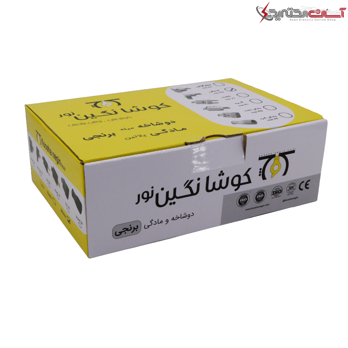 دوشاخه برق خانگی کوشا نگین نور مدل چپقی برنجی