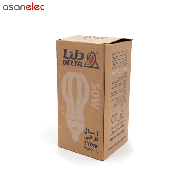 شرکت لامپ دلتا (Delta) با دو دهه فعالیت در زمینه محصولات الکترونیکی و روشنایی توانسته است با کسب استاندارد ملی ایران و ISO 9001:2008 و استاندارد CE اروپا بر کیفیت خود صحه گذاشته و انتخاب این واحد صنعتی به عنوان واحد نمونه استاندارد خود گواه کیفیت بالای محصولات دلتا است.لامپ کم مصرف (CFL) دلتا که ملاحضه می کنید با مدل لوتوس عرضه می شود. که دارای توان مصرفی 50 وات است، با توجه به قدرت بالای نور دهی و مصرف بسیار کم این محصول در رده A قرار می گیرد. شار نوری این محصول 3300 لومن بوده که توسط سازمان استاندارد اندازه گیری شده و پس از گذشت زمان و استفاده دچار افت نوری نمی شود و از عمر بسیار طولانی برخوردار است. تمامی محصولات لامپ دلتا فاقد هرگونه اشعه ماورا بنفش (UV) بوده که هیچ آسیبی به چشم و پوست وارد نمی کند.