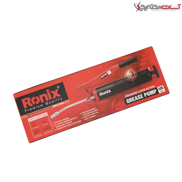 پمپ گریس «رونیکس» (Ronix) مدل RH-4303 ،بدنه و لولهای تمام فلزی دارد. طول لولهی خمیدهی انتقالدهندهی گریس در این گریس پمپ، 185 میلیمتر بوده و قطر مخزن آن 58 میلیمتر است و 400 میلیلیتر ظرفیت دارد. این وسیله وزنی برابر 1300 گرم دارد. از مزیتهای این پمپ میتوانیم به بدنهی ضد لغزش، سیستم خلاصکنندهی سریع و استفادهی آن با کارتریج گریس یا گریس دستی اشاره کنیم. گریس مادهای روان کننده است. این ماده غلظت بالایی دارد و دارای خواص به خصوصی است که روغن روان کننده به تنهایی آن خواص را ندارد. از خواص گریس میتوان به کاهش دادن نیروی اصطکاک و جلوگیری از سائیدگی اجزای یاتاقانها، مقاومت در برابر نشتی و چکهکردن از سطوح روان کاری شده و محافظت قطعات در برابر خوردگی اشاره کرد. شما میتوانید مخزن این پمپ را از گریس پر کنید. سپس سری نازل آن در محل مورد نظر قرار داده و با فشار مناسب دستهی آن به گریسکاری بپردازید. شرکت رونیکس توانسته است پیوندی عمیق بین علم و بازار برقرار کرده و با عرضه محصولات با کیفیت، بازار خوبی را برای محصولات خود فراهم کند.