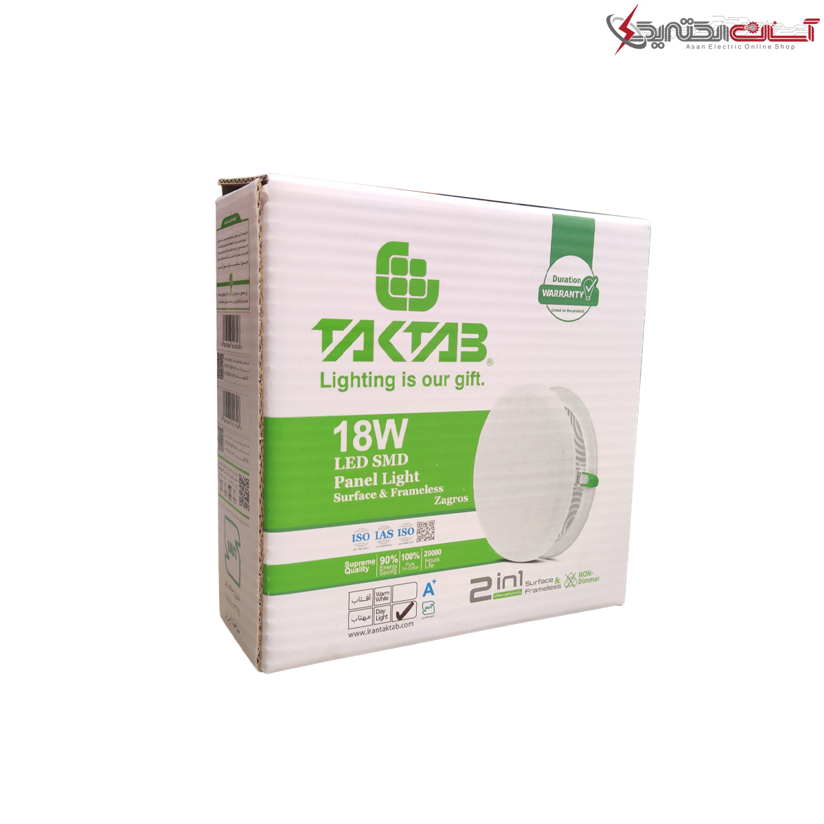 پنل دایره ای 18 وات دو کاره توکار و روکار سایزشو تک تاب مدل زاگرس